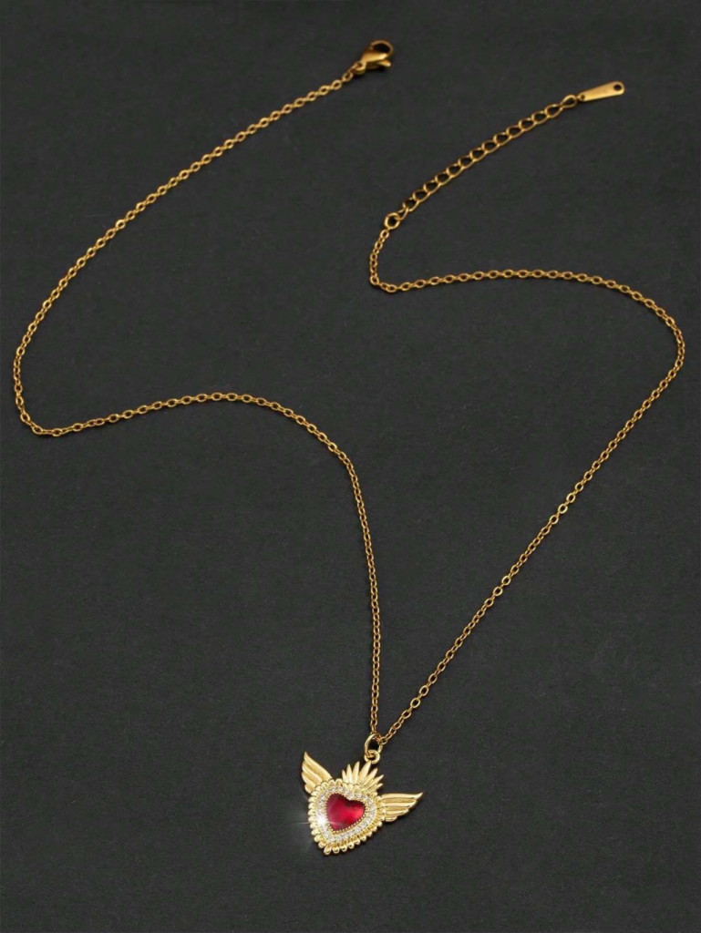 A nyaklánc állítható láncának köszönhetően kényelmes viseletet biztosít, így hétköznapi megjelenéshez és ünnepi alkalmakhoz is tökéletes választás. Ajándékként különösen szívhez szóló, hiszen a piros szív a szeretet, a ragaszkodás és a hűség kifejezője, míg az angyalszárnyak védelmező erővel ruházzák fel viselőjét. Egy kifinomult ékszer, amely méltó kiegészítője minden stílusnak.