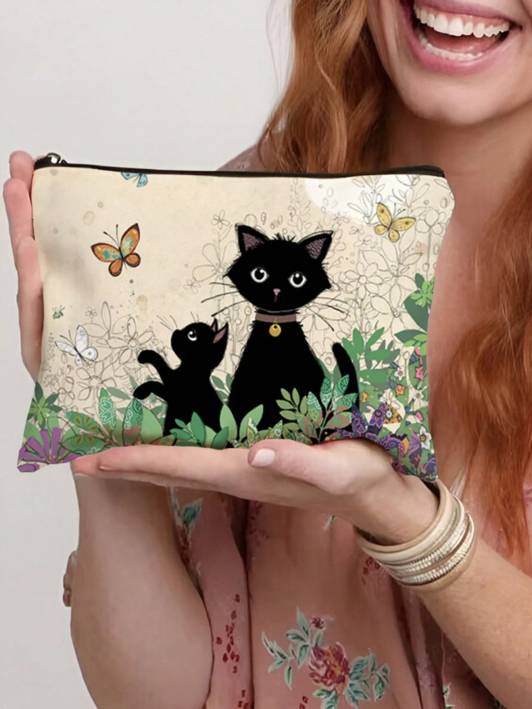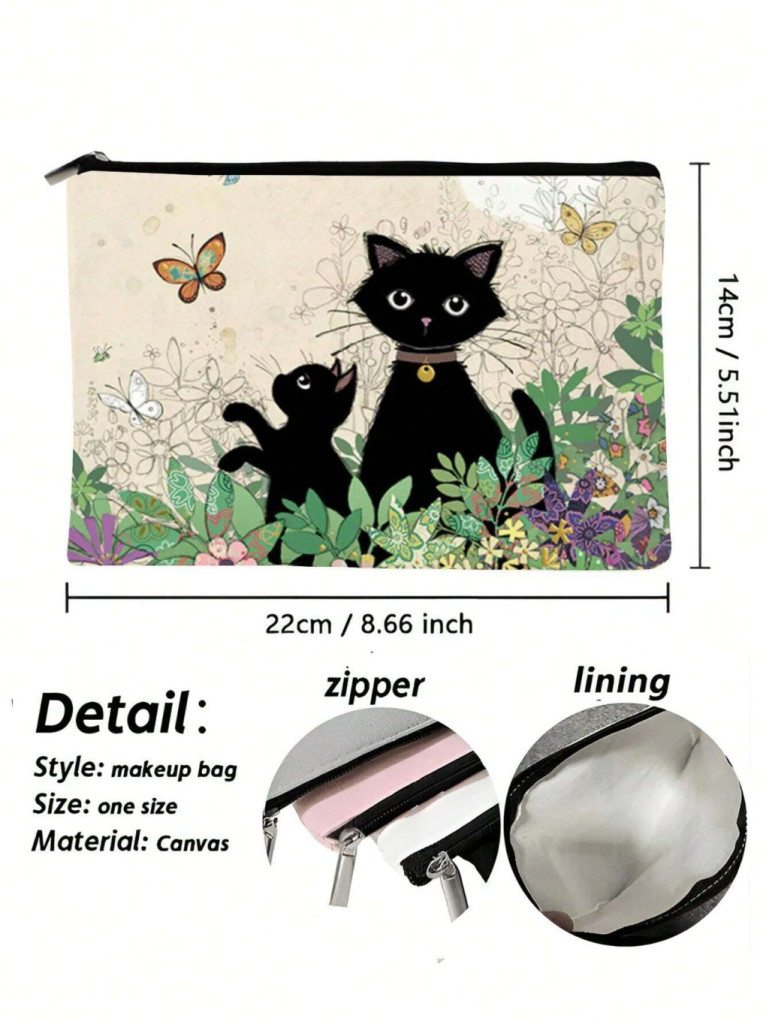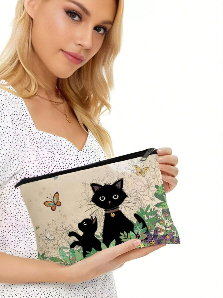 Ez az aranyos, fekete cicás kozmetikai táska garantáltan mosolyt csal az arcodra! A bájos, természet ihlette design – pillangókkal, virágokkal és kíváncsi cicákkal – nemcsak egyedi, hanem minden macskakedvelő stílusos kiegészítőjévé válhat.