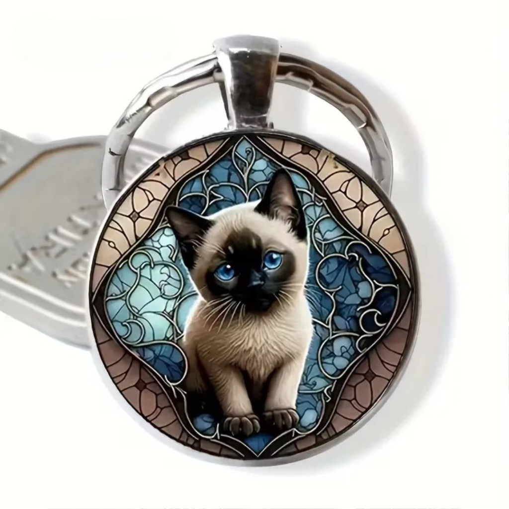 Ez a cicás kulcstartó a kedvesség, a szeretet és az állatrajongók kifinomult ízlésének szimbóluma. A kerek, fémből készült medál egy bájos, részletgazdagon kidolgozott cicát ábrázol, amelyet gyönyörű, kékes-barna tónusú háttér és díszített perem vesz körül. A design ötvözi a modern eleganciát és a vintage hangulatot, így egyaránt tökéletes választás mindennapi használatra vagy ajándéknak.