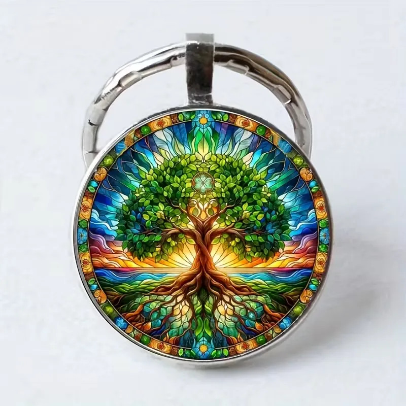 Az életfa kulcstartó a növekedés, az erő és az egyensúly szimbóluma, amely ragyogó színeivel az élet energiáját sugározza. A medál közepén elhelyezkedő fa motívum a földből táplálkozó gyökerekkel és az ég felé törő, vibráló lombkoronával az összetartozás és a harmónia üzenetét hordozza. A tűéles, üveg alatti grafika mélységet és ragyogást kölcsönöz a motívumnak, miközben a fémkeret modern eleganciát biztosít. Egy apró kiegészítő, amely különleges jelentést visz a mindennapokba.