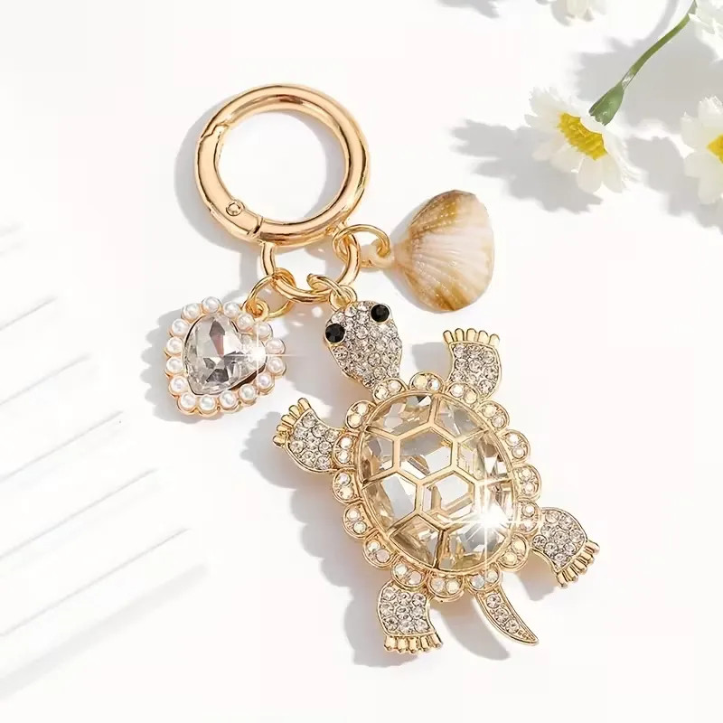 A teknős a hosszú élet, a stabilitás és a kitartás jelképe, így ez a kulcstartó nemcsak dekoratív, hanem jelentéssel teli talizmán is. Akár táskán, akár kulcscsomón viseled, mindig egy apró, ragyogó emlékeztető lesz arra, hogy a nyugalom és az egyensúly minden helyzetben megtalálható.