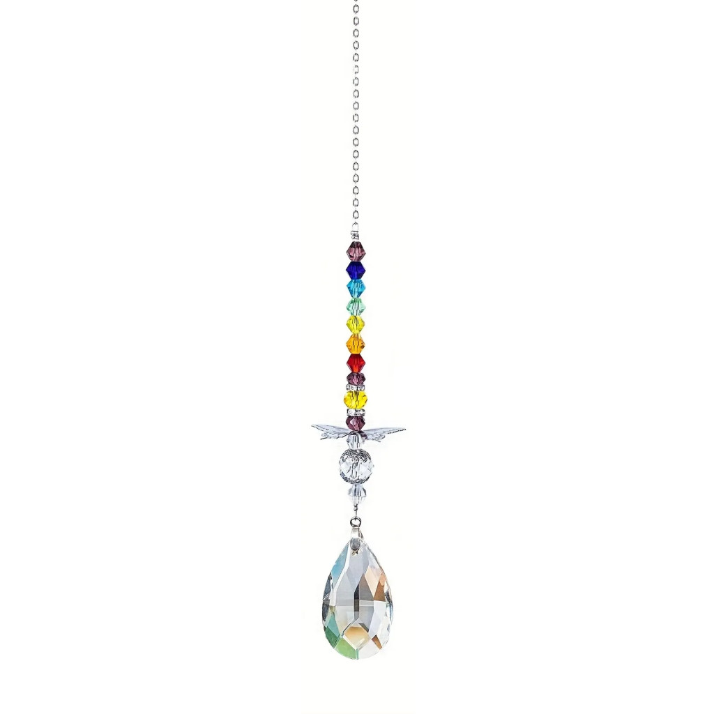 A Fénycsepp napfényfogó a tisztaság, a fény és a színek harmóniájának megtestesítője. Szivárványszínű kristálygyöngyei a csakrák energiáit idézik, miközben a fényt apró, táncoló sugarakra bontva tölti meg a teret ragyogással. A csepp alakú kristály az élet áramlását jelképezi, amely a napfény minden érintésével békét, derűt és friss energiát hoz a környezetbe.