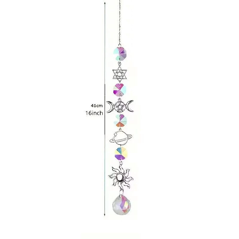 Ez a napfényfogó a kozmikus harmónia üzenetét hordozza: minden fényben és árnyékban ott rejlik az egyensúly. A nőies hold és a férfias nap energiája egymást kiegészítve teremti meg a teljességet, amely átragyog a tér minden pontján. Ablakban vagy meditációs helyen elhelyezve segít megtisztítani az energiateret, inspirál, és összekapcsol a világegyetem természetes rendjével.