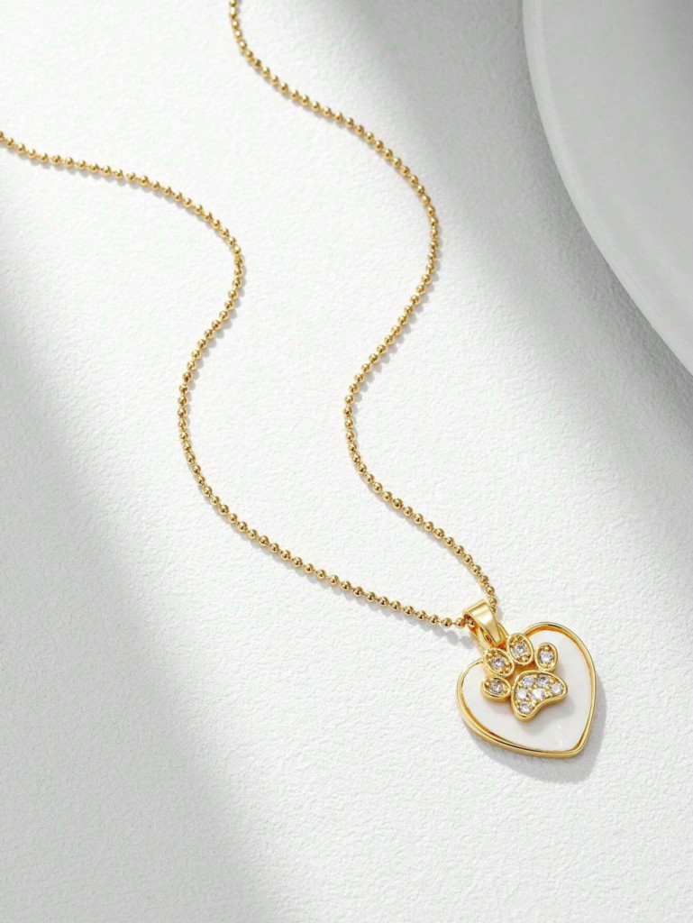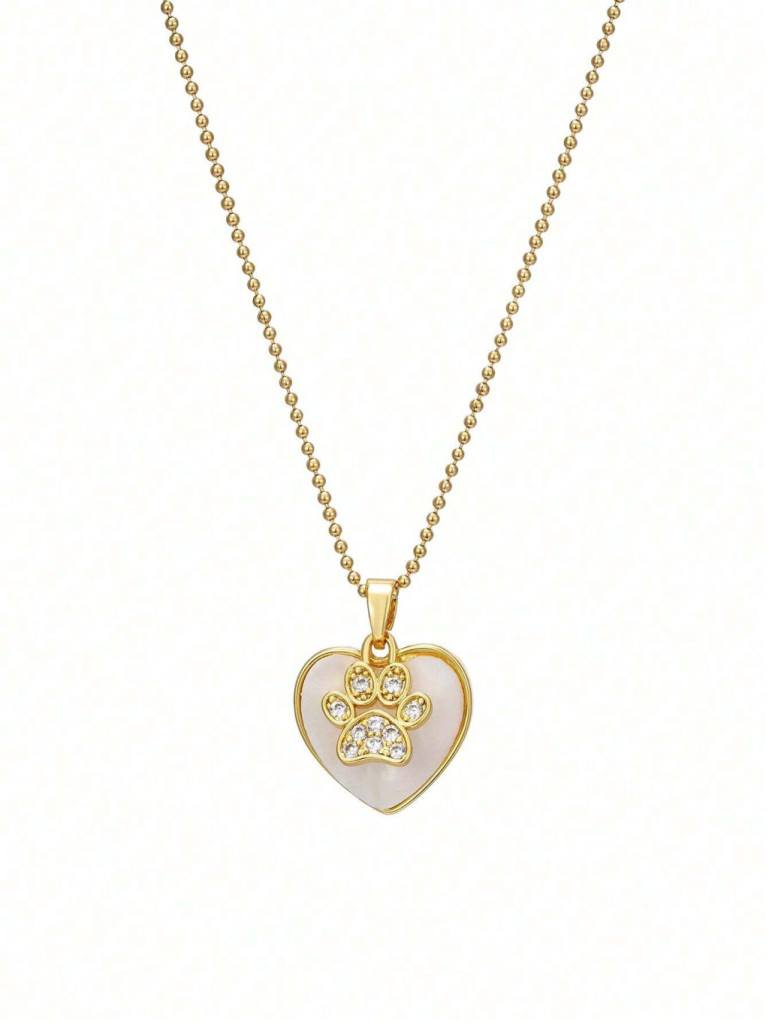Ez a bájos mancs nyaklánc szív alakú medáljával a kisállatok iránti szeretetet és ragaszkodást fejezi ki. A gyöngyházfényű alapot apró, csillogó cirkónia kövekkel kirakott mancsdísz ékesíti, amely játékos és elegáns megjelenést kölcsönöz. Az aranyozott keret finom részletei kiemelik a medál különlegességét, így ez az ékszer egyszerre sugároz meghittséget és stílust.