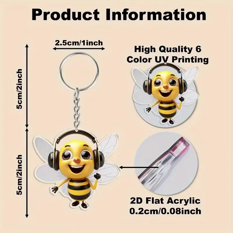 Ez a bájos méhecske kulcstartó mosolyt csal a mindennapokba és jókedvet sugároz, bárhová is viszed magaddal. A részletgazdag, kedves figura a pozitív energiát, az életörömöt és a szeretet erejét szimbolizálja. Könnyű, tartós akrilból készült, fémlánccal és kulcskarikával, így táskádon, kulcscsomódon vagy ajándékként is tökéletes választás. A méhecske mindig is a szorgalom, az összetartás és a természet harmóniájának jelképe volt, ezt a derűs hangulatot viszi tovább ez a kedves kis talizmán is, bárhol legyen veled.