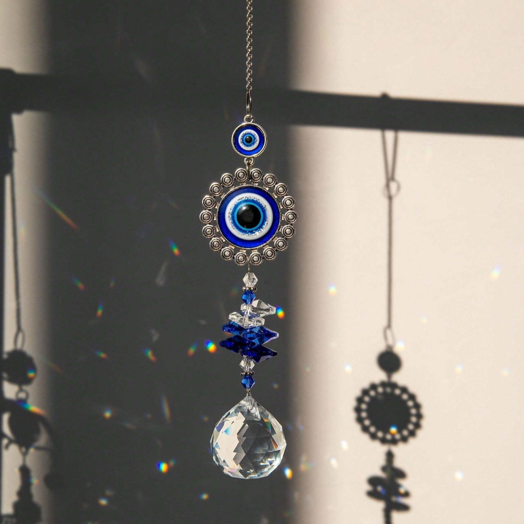 A Nazar szemes védelmező kristály függő a hagyományos szimbólum erejét hozza el otthonodba. Az ikonikus kék szem motívum régóta ismert a gonosz szándék és a negatív energiák távol tartásáról, így erőteljes védelmet biztosít a mindennapokban. Az alsó kristály a napfény sugarait szivárványszerű fényjátékra bontja, amely harmóniát, békét és különleges atmoszférát teremt a térben.
