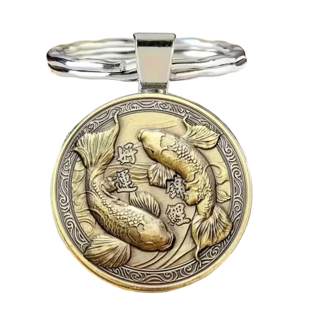 A Szerencse kulcstartó Koi halas motívuma a keleti kultúra egyik legerőteljesebb szerencse- és kitartásjelképe. A két aranyló koi hal egymás köré fonódva a harmóniát, az egyensúlyt és a folyamatos fejlődést szimbolizálja. A részletgazdag, antik arany hatású kidolgozás elegáns és spirituális kisugárzást ad ennek az amulettnek, amely a mindennapokban is segít megőrizni a belső békét, miközben a jólét és siker energiáját vonzza magához.
