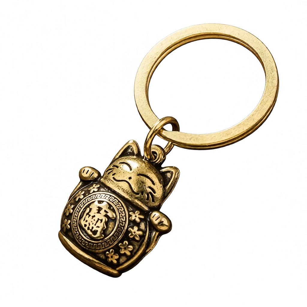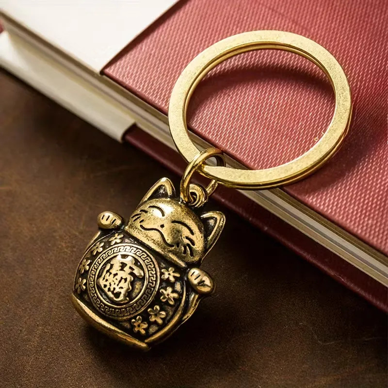 A Szerencsemacska kulcstartó a keleti kultúra egyik legismertebb szerencsehozó szimbólumát idézi meg. A finoman kidolgozott, rézötvözetből készült macskafigura a jólét, a boldogság és az anyagi biztonság szimbóluma, amely a mindennapokban is pozitív energiát sugároz. Apró mérete ellenére erőteljes jelképet hordoz: a szerencsét hívó, felemelt mancs a bőség és a kedvező lehetőségek megérkezését jelenti, így ez a kulcstartó nem csupán dísz, hanem egy kis talizmán, ami a jó dolgok felé terel.