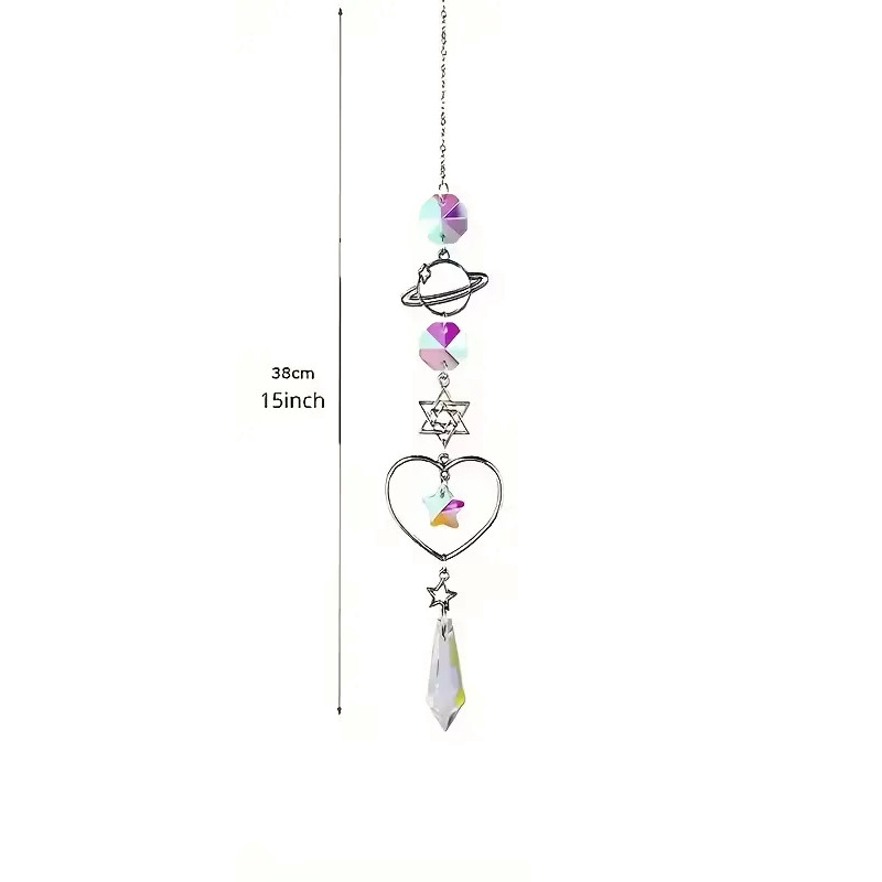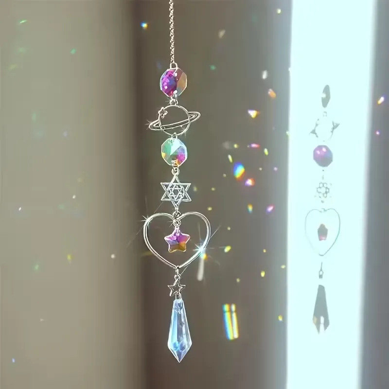 A Szívcsillag kristály napfényfogó a szeretet, a hit és a kozmikus energia találkozását szimbolizálja. Finoman megmunkált kristályai a napfényben életre kelnek, és szivárványos ragyogással töltik meg a teret. A szív, a csillag és a bolygó motívumai a szeretet erejét, az univerzum végtelenségét és az összekapcsolódás harmóniáját jelenítik meg, megnyugtató, fénylő aurát teremtve.