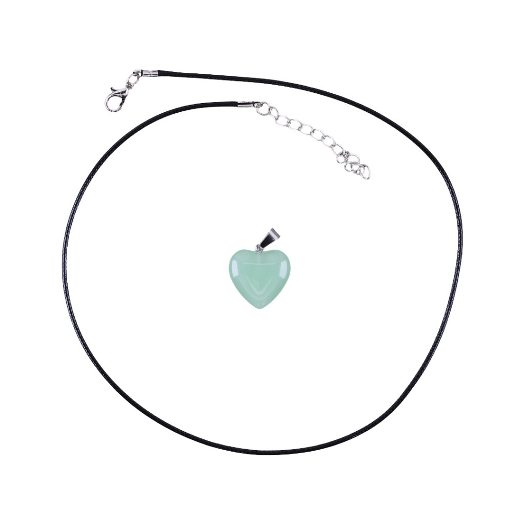 A fekete nyakpánt és az ezüstszínű rögzítés visszafogott keretet ad a halványzöld szívnek, kiemelve annak friss és harmonikus megjelenését. Ez a nyaklánc azok számára ideális, akik a belső egyensúlyt, az érzelmi tisztaságot és a természethez való kapcsolódást szeretnék finoman kifejezni.