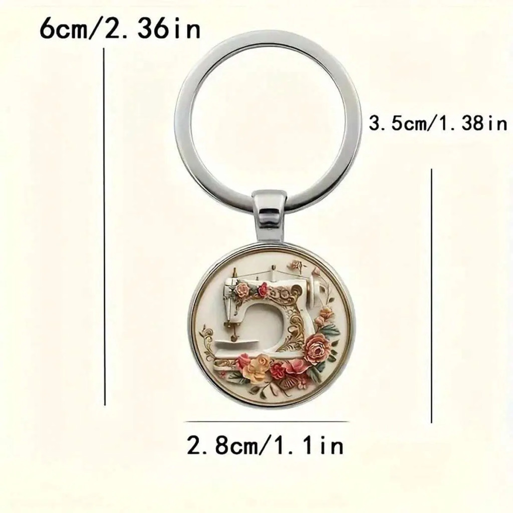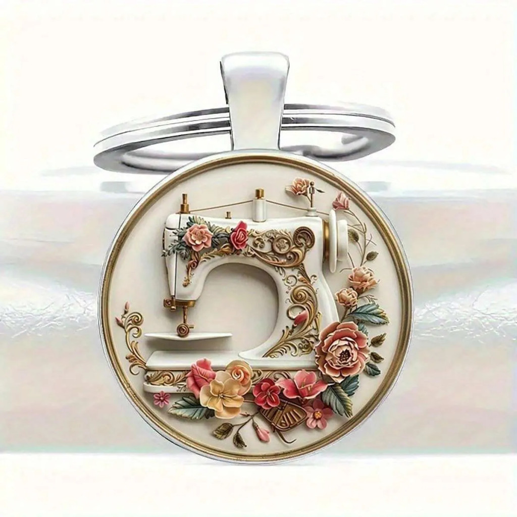 Ez a varrógépes kulcstartó a kézművesség, a kreativitás és a nosztalgia bájos szimbóluma. A kör alakú, prémium minőségű fém medál egy részletgazdagon kidolgozott, antikolt stílusú varrógépet ábrázol, melyet finoman festett virágok és rózsák ölelnek körül. A kialakítás egyszerre idézi a vintage hangulatot és a kézimunka iránti szenvedélyt, egyedi és ízléses kiegészítővé téve. A medál felülete enyhén gyöngyházas bevonatú, amely exkluzív ragyogást kölcsönöz a darabnak.