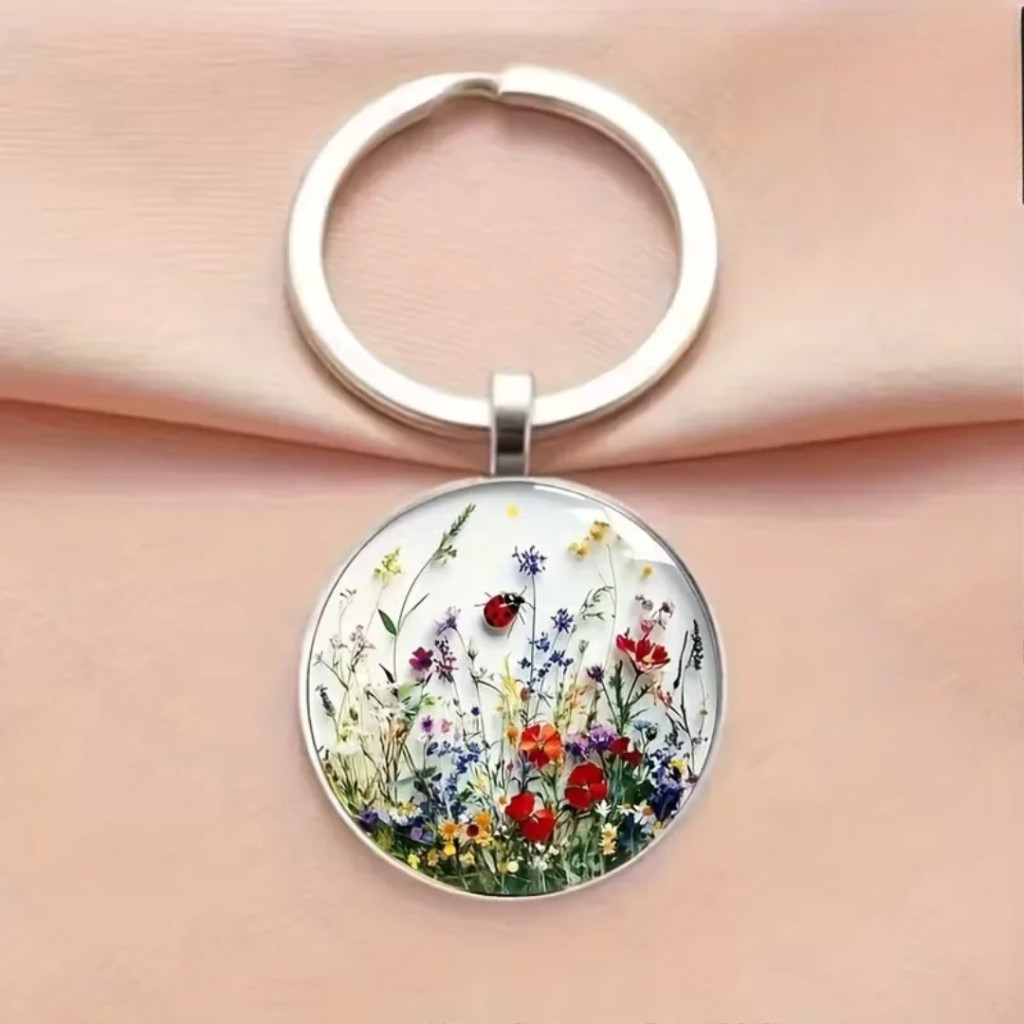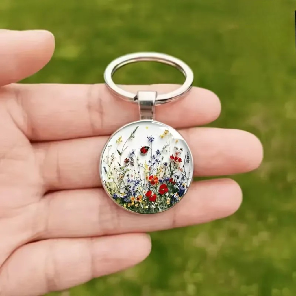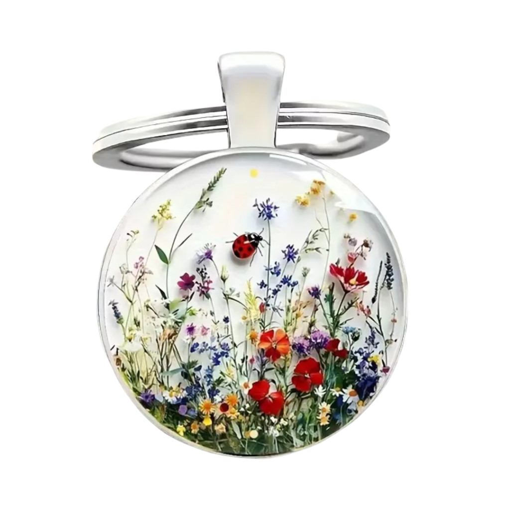 A Virágos kulcstartó katicabogárral a természet szépségét és a tavasz élettel teli hangulatát idézi meg. A részletgazdag, színes virágmezőben megpihenő katicabogarak a szerencse, az öröm és a megújulás jelképei. Ez a kedves, romantikus kiegészítő különleges hangulatot visz a mindennapokba, legyen szó táskáról, kulcscsomóról vagy akár ajándékról egy természetkedvelő számára.
