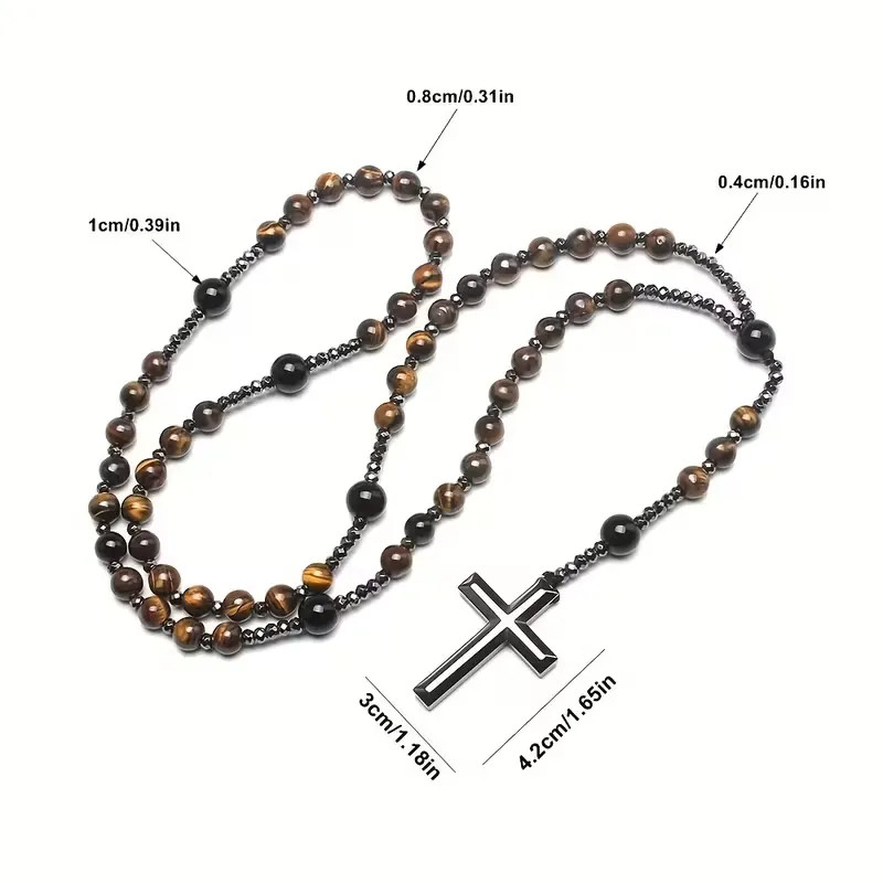 A matt felületű gyöngyök kellemes tapintásúak, nem hivalkodóak, mégis karakteresek, így harmonikusan illeszkednek modern és hagyományos stílushoz egyaránt. A rózsafüzér viselése segíthet a befelé figyelésben, az elcsendesedésben és a lelki egyensúly megőrzésében, miközben diszkrét, mégis határozott szimbólumként kíséri viselőjét a mindennapok során.