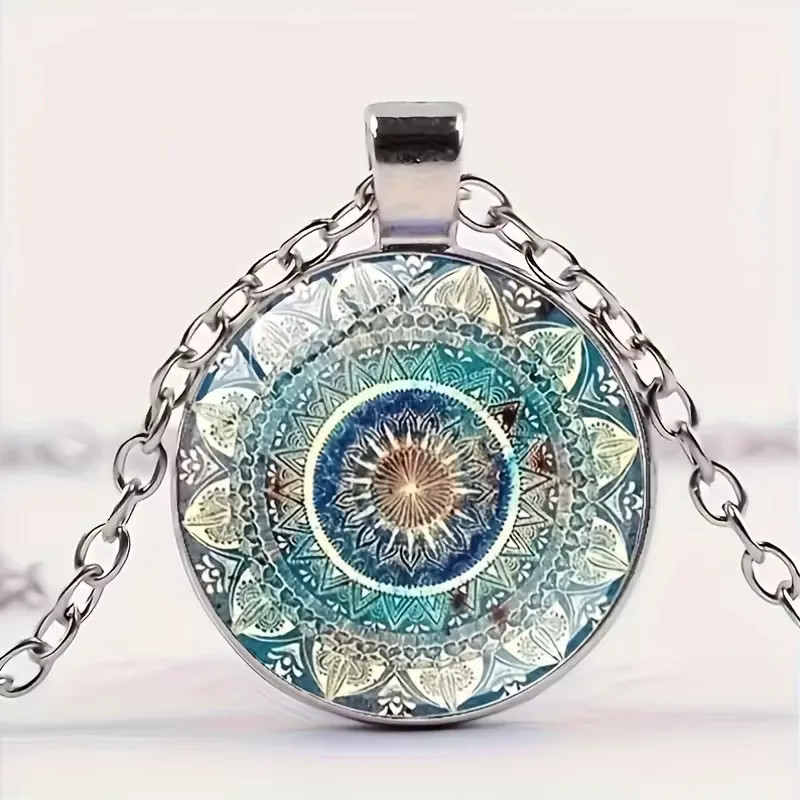 A Mandala nyaklánc a harmónia, az egyensúly és a belső béke szimbóluma. Finom részletgazdagsággal megmunkált medálja a mandala ősi mintázatait idézi, melyek a lelki középpont megtalálásában segítenek. A türkizkék és arany árnyalatok összhangja a nyugalmat és a pozitív energiákat erősíti, miközben az elegáns fémlánc mindennapi és alkalmi viselethez is kifinomult kiegészítővé teszi.